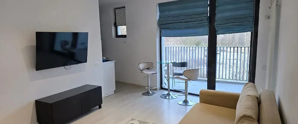 Se oferă spre închiriere o garsonieră modernă, situată într-o zonă liniștită din nordul Bucureștiului, la aproximativ 10 minute de mers pe jos de stația de metrou Aurel Vlaicu.