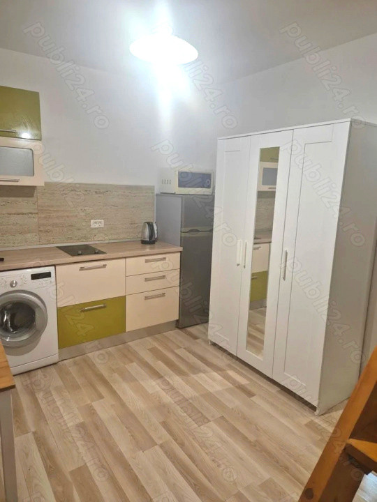 ROCCA vă propune spre închiriere o garsonieră deosebită, tip studio, cu dormitor la etaj mansardat, având o suprafață utilă de 40 mp, situată într-o zonă liniștită și verde din Brâncoveanu – la doar 15 minute de mers pe jos până la metrou Constantin Brâncoveanu și stația STB 116. Garsoniera este complet mobilată și utilată, dotată cu aer condiționat, centrală termică, frigider, plită și cuptor cu microunde. Dormitorul este amplasat la etajul mansardat, beneficiind de lumină naturală printr-un geam tip Velux, care oferă o priveliște plăcută. Imobilul este situat într-un bloc mic, cu regim de înălțime P+4+M, într-un cartier liniștit, înconjurat de case, aproape de Parcul „Lumea Copiilor”, școli, grădinițe și magazine. Zona Brâncoveanu este apreciată pentru accesul rapid la mijloacele de transport în comun, apropierea de spații verzi și comunitatea civilizată.