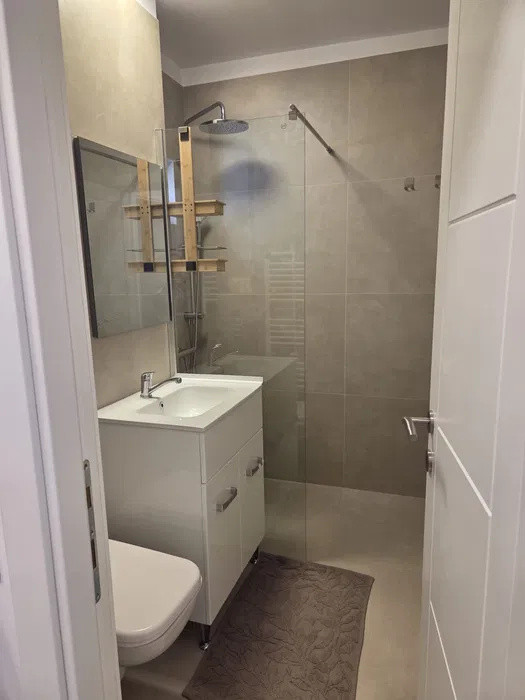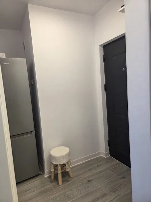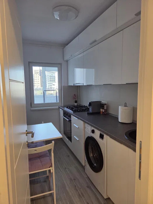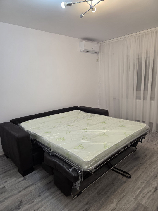 Garsoniera se închiriază complet mobilată și utilată, toate dotările fiind noi: aer condiționat, plită pe gaz, cuptor electric, mașină de spălat rufe, frigider și mobilier modern.