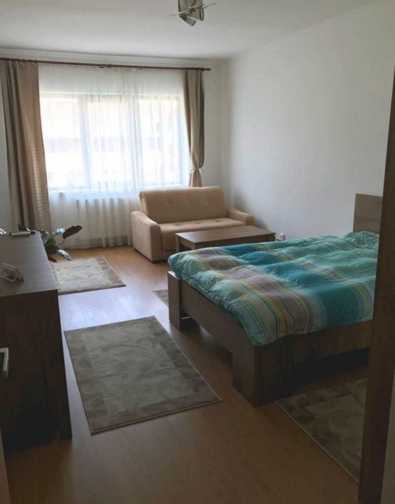 Apartamentul este luminos, spațios și eficient compartimentat, oferind o separare vizuală între zona de dormit și cea de living. Dispune de cameră mare cu pat matrimonial și zonă de relaxare, bucătărie separată complet utilată, baie cu cadă și hol generos cu spații de depozitare.
