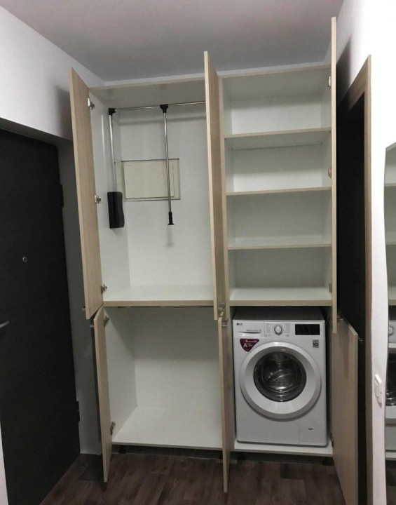 Această garsonieră decomandată, situată la etajul 4 din 10, are o suprafață utilă de 35 mp și este complet mobilată și utilată, oferind tot ce ai nevoie pentru un stil de viață echilibrat și practic. Spațiile au fost amenajate inteligent, cu multiple zone de depozitare în hol și dormitor, mobilier dispus pe verticală, pat dublu confortabil, masă și suport de călcat, uscător de rufe și finisaje moderne.