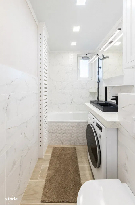 Garsoniera este mobilată și utilată complet: mașină de spălat vase, aer condiționat 12.000 BTU, mașină de spălat rufe cu uscător. Blocul este recent anvelopat și dispune de lift nou.