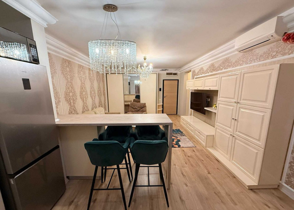 Locuința dispune de living cu bucătărie open space, dormitor elegant, baie modernă și terasă ideală pentru relaxare.