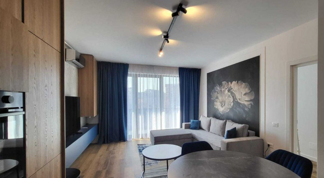 ROCCA îți propune spre închiriere un apartament de 2 camere, situat la etajul 3 din 5, într-un imobil nou tip boutique, pe Str. Theodor Speranția. Cu o suprafață totală de 60 mp, locuința este eficient compartimentată, având living de 20 mp, dormitor de 14,20 mp, bucătărie open space de 6,60 mp și o terasă generoasă de 9 mp. Apartamentul este complet mobilat și utilat, dispune de centrală termică proprie, aer condiționat, două Smart TV Samsung (166 cm în living și 120 cm în dormitor), mașină de spălat rufe, uscător, mașină de spălat vase, combină frigorifică, cuptor electric, plită pe gaz, hotă și interfon.