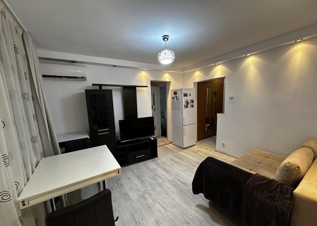 Îți propun un apartament semidecomandat, complet mobilat și utilat, situat la parterul unui bloc de 10 etaje, cu o suprafață de 40 mp utili. Este ideal pentru cei care vor să locuiască într-o zonă liniștită, dar foarte bine conectată la transport și facilități urbane. Apartamentul este dotat cu ușă metalică cu butuc dublu, canapea extensibilă, mașină de spălat vase, mașină de spălat rufe, uscător electric de haine, filtru de apă potabilă, aer condiționat, frigider mare, saltea cu spumă cu memorie, aragaz cu cuptor și apometre cu radiocitire. Locația este excelentă, cu acces rapid la Parcul Drumul Taberei, Piața Drumul Taberei, Plaza Mall și restaurante precum Trattoria Monza.