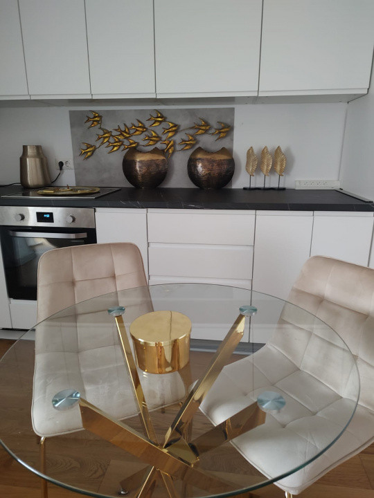 Cauți un apartament de lux chiar lângă Parcul Herăstrău? Acest apartament de 2 camere este situat în Herăstrău Parc View, la intrarea în parc dinspre Bd. Ficusului, într-un condominiu exclusivist. Locuința oferă un nivel ridicat de confort, cu încălzire în pardoseală, parchet din lemn natural, terasă generoasă și mobilier italian de lux, completată de piese de designer. Apartamentul este complet mobilat și utilat cu electrocasnice premium, inclusiv mașină de spălat cu uscător, mașină de spălat vase, espressor, aer condiționat și internet. Beneficiază de loc de parcare în garaj și acces imediat la restaurante, cafenele, sală de fitness, supermarket non-stop și mijloace de transport către centru și aeroport. Ideal pentru un stil de viață exclusivist într-una dintre cele mai dorite zone din București. Hai la vizionare!