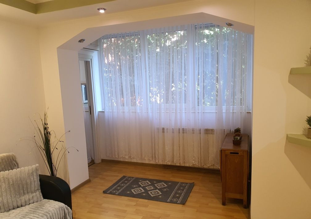 Situat la etajul 1 dintr-un imobil îngrijit, apartamentul oferă o priveliște plăcută către un parculeț aflat chiar în fața geamurilor. Proprietatea a fost recent renovată și se închiriază complet mobilată și utilată, pregătită pentru mutare imediată.