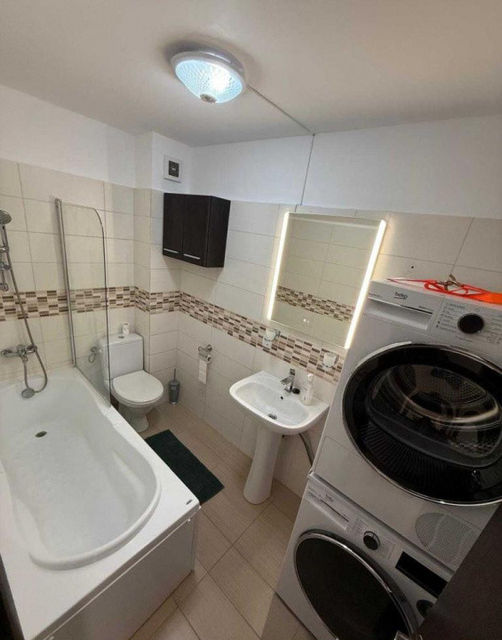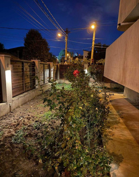 Locuința dispune de centrală termică proprie cu termostat wireless, aer condiționat, mașină de spălat vase, mașină de spălat rufe, uscător de rufe, cuptor, frigider și Smart TV în fiecare cameră, inclusiv în bucătărie. Blocul este izolat termic, are geamuri termopan și plase de țânțari, iar curtea interioară este împrejmuită cu gard perimetral și amenajată cu flori, oferind un plus de intimitate și relaxare.