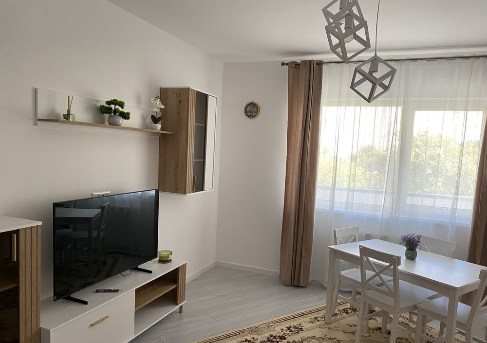 Îți propun spre închiriere un apartament cu 2 camere, cu o suprafață utilă de 54 mp și două terase totalizând 16 mp, aflat la prima închiriere. Locuința este complet mobilată și utilată, amenajată cu bun gust și atenție la detalii, oferind un ambient confortabil și elegant. Dispune de parcare subterană dedicată, acces direct în clădire și toate dotările necesare pentru un stil de viață modern.