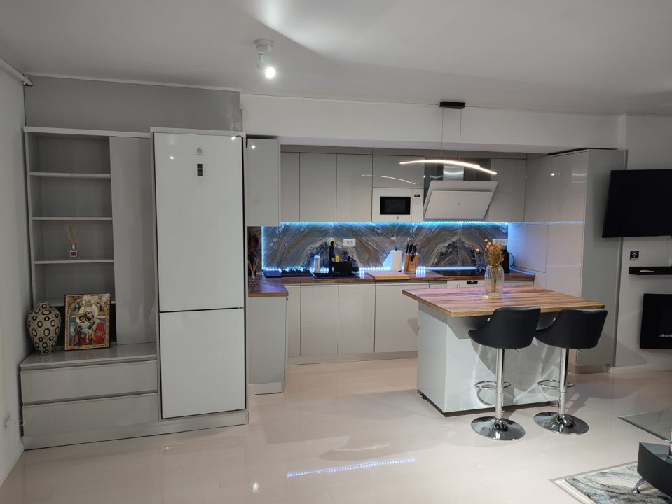 Apartamentul este la prima închiriere, complet mobilat și utilat, cu mobilier realizat la comandă, living luminos cu zonă de relaxare, dormitor elegant cu dressing, bucătărie modernă complet echipată și baie cu finisaje contemporane.