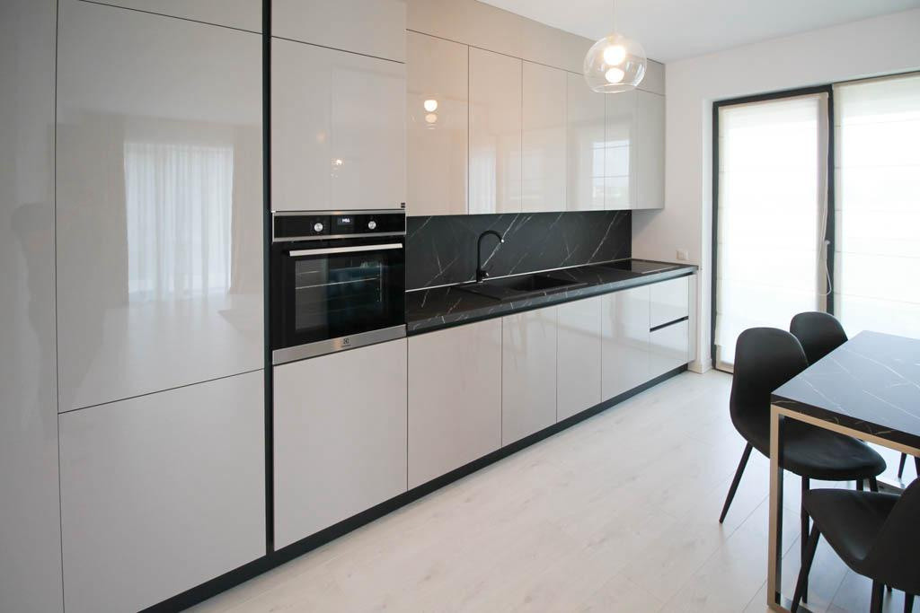 Complet mobilat și utilat nou, bucătărie Rovere cu electrocasnice premium încorporate, mobilier Mobexpert, Domicilio și Alfemo.