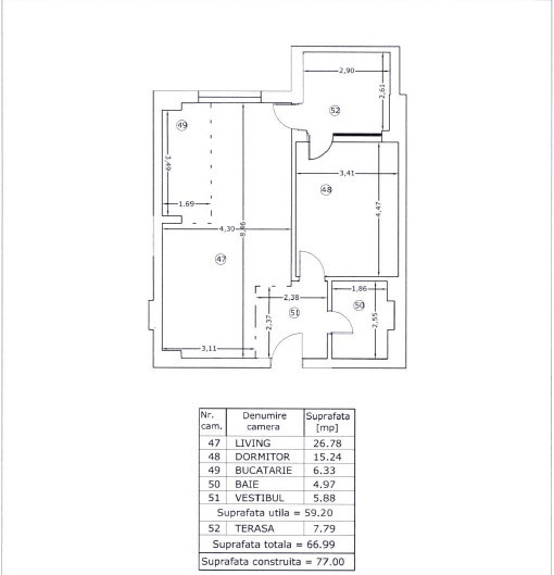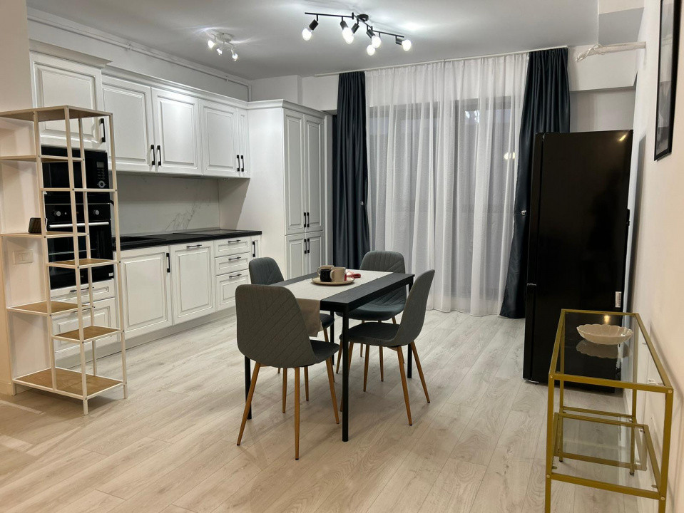 Apartament cu 2 camere situat la 3 minute de Pipera Plaza, în spatele Cubic Center, într-un bloc finalizat în 2023, la etajul 4 din 8. Are o suprafață utilă de 59,2 mp plus terasă de 7,7 mp și este complet mobilat și utilat.