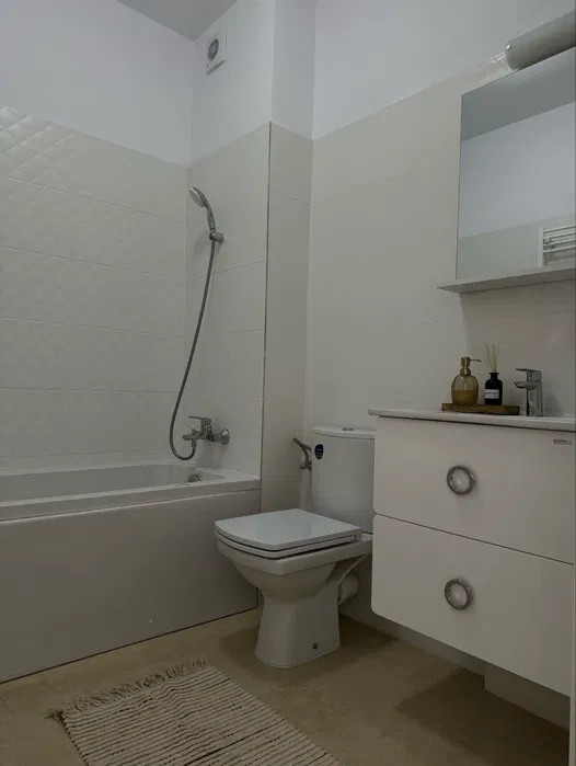 Apartament de 2 camere, decomandat, cu o suprafață utilă de 57 mp și 2 terase de 14 mp, situat la etajul 1 din 5, complet mobilat și utilat.