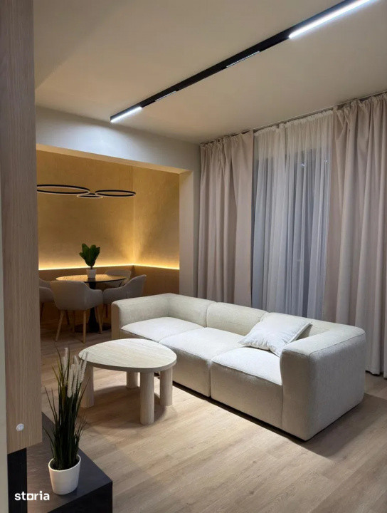 Apartamentul are o suprafață de 52 mp și este compartimentat eficient, incluzând living open-space cu bucătărie și insulă, zonă de dining elegant integrată, dormitor spațios cu dressing și balcon generos.
