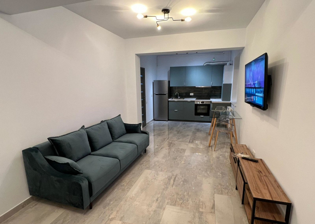 Cauți un apartament cu curte proprie aproape de metrou în Străulești? Acest apartament de 2 camere, situat pe Drumul Cavnic, se află într-un bloc nou cu regim mic de înălțime (3 etaje) și oferă 43 mp utili, terasă de 22 mp și curte proprie de 55 mp. Locuința este complet mobilată și utilată, cu finisaje premium (marmură, electrocasnice Gorenje, centrală Vaillant), fiind ideală pentru confort și intimitate. Beneficiază de loc de parcare subteran și acces rapid către metrou și principalele artere din nordul Bucureștiului. Hai la vizionare!