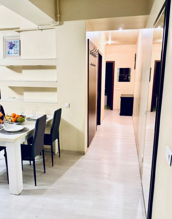 ROCCA vă propune spre închiriere un apartament semidecomandat de 80 mp, situat la etajul 9 al unui imobil construit după anul 2010. Locuința impresionează prin finisaje de calitate, mobilier contemporan și o bucătărie complet echipată cu electrocasnice moderne.