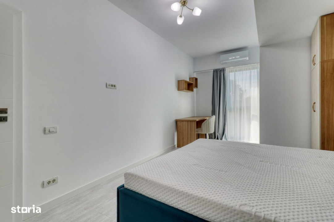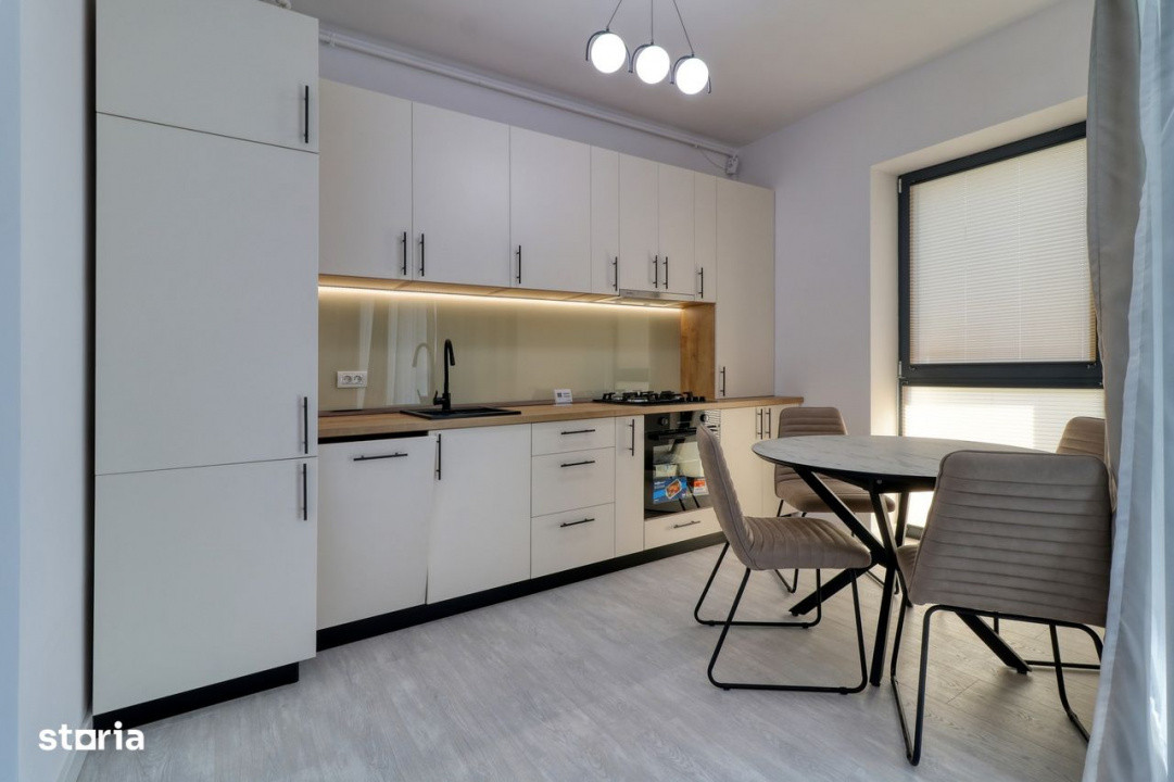 Apartamentul este complet mobilat și utilat cu electrocasnice noi, inclusiv bucătărie echipată cu plită, cuptor, hotă, frigider și mașină de spălat vase. Dormitoarele dispun de dressinguri și birouri, iar holul spațios include un dressing generos și cuier elegant.