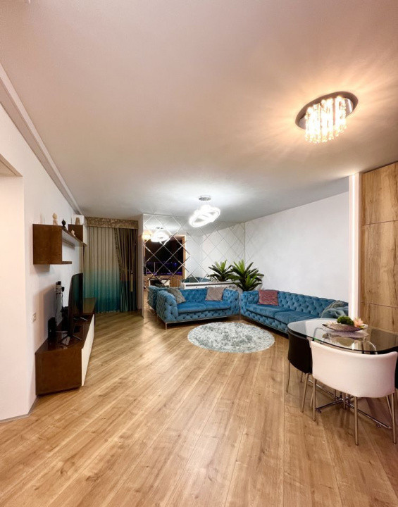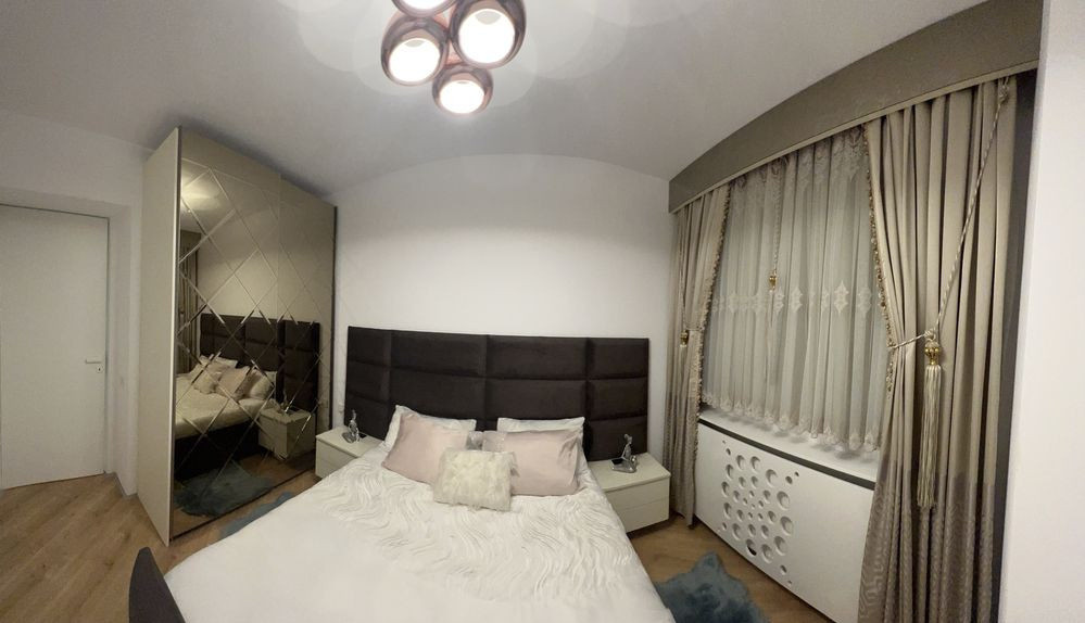 Livingul este generos și luminos, iar cele două dormitoare sunt dotate cu paturi matrimoniale, dressinguri spațioase iluminate și TV smart.