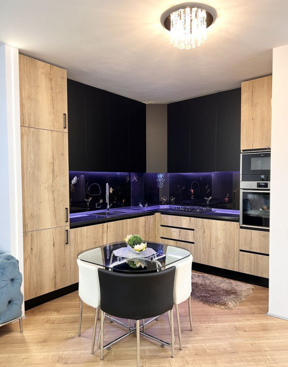 Locuința este la prima închiriere și este mobilată și utilată modern, cu finisaje de calitate și electrocasnice premium marca Neff: mașină de spălat vase, frigider, cuptor, cuptor cu microunde și mașină de spălat rufe.