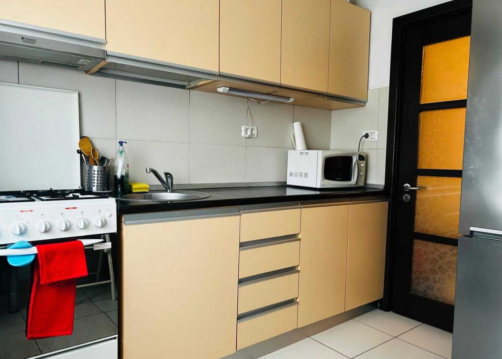 Apartamentul este complet mobilat și dispune de un living spațios, un dormitor matrimonial, un al doilea dormitor cu canapea extensibilă (ideal pentru birou sau oaspeți), o bucătărie modernă complet mobilată și utilată, precum și o baie cu geam, pentru ventilație naturală. Confortul termic este asigurat de două aparate de aer condiționat, iar numeroasele spații de depozitare oferă o organizare eficientă.
