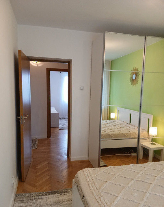 Apartamentul este curat și renovat, având o compartimentare practică ce include living, 2 dormitoare, o baie, debara mare și dressing, oferind spații generoase de depozitare. Un avantaj important îl reprezintă cele două balcoane cu orientare nord-sud, care asigură lumină naturală pe tot parcursul zilei.