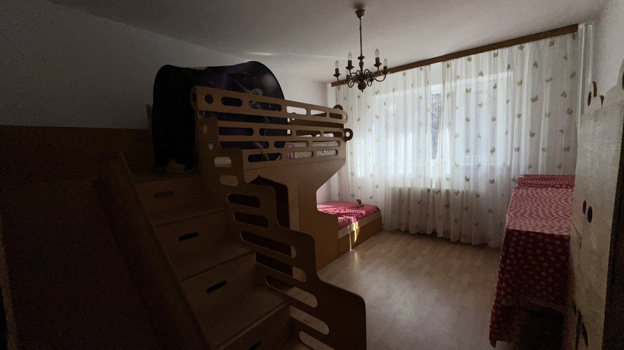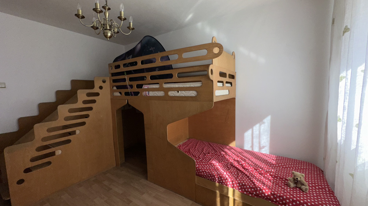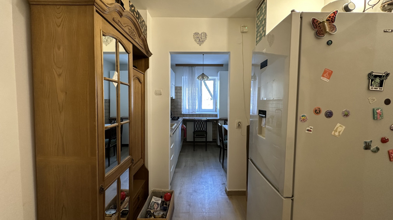 Cu o suprafață de 80 mp, apartamentul dispune de două băi, două balcoane și centrală proprie, oferind confort și funcționalitate.
